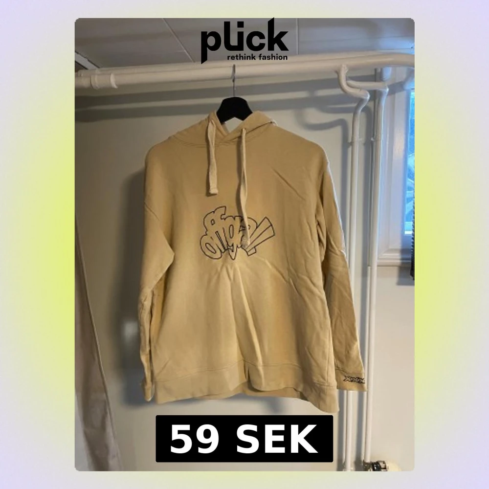 Säljer en beige hoodie från Official Gallery i storlek S. Hoodien har en avslappnad passform och ett stilrent streetwearuttryck med tryck på bröstet samt broderade detaljer vid ärmslutet.