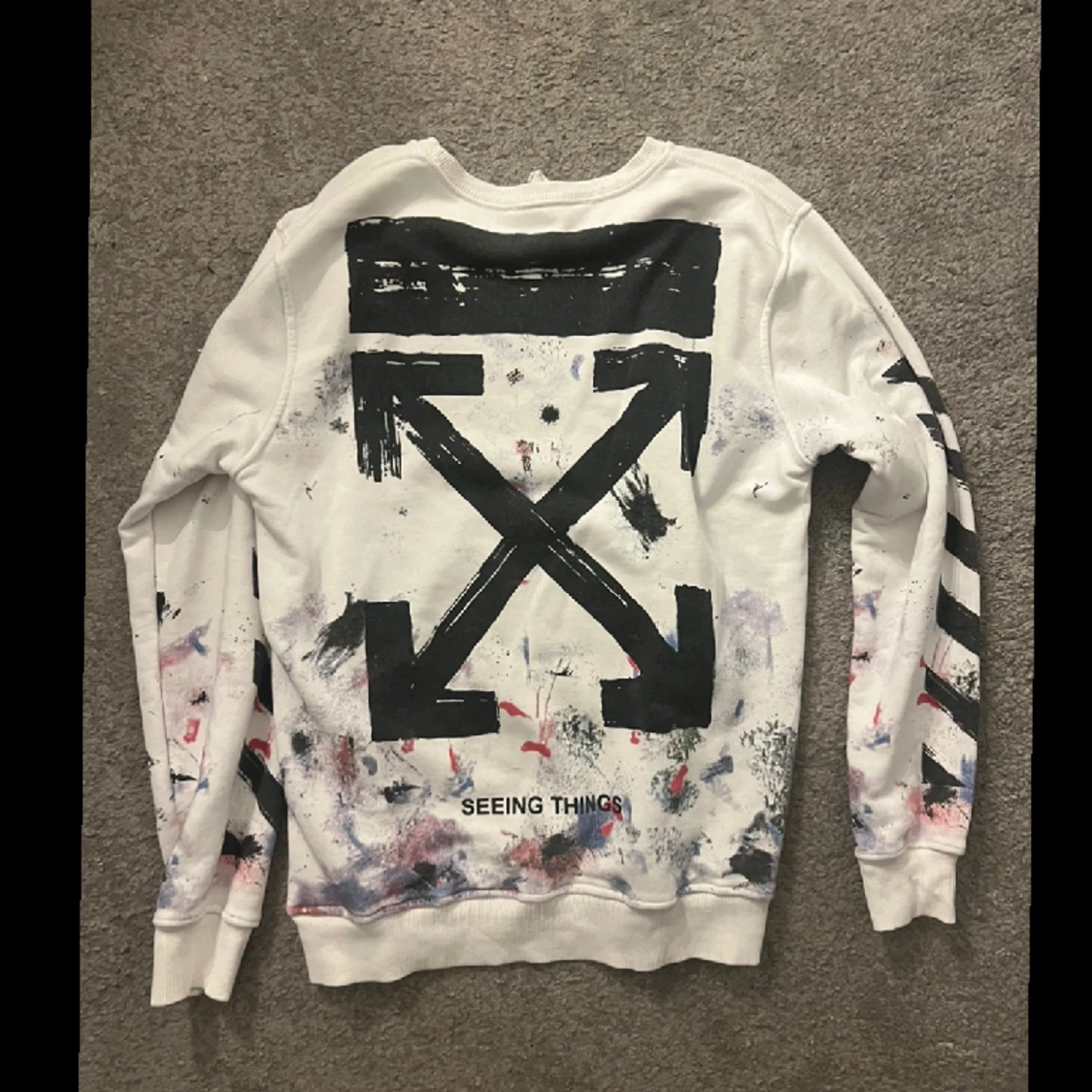 Min bror köpte denna tröjan men tycker inte han passar i den. Detta är en Main Label off-white sweatshirt, storlek XXL😊