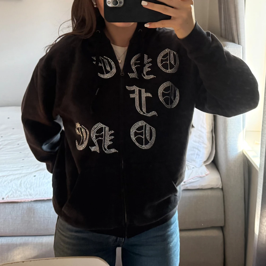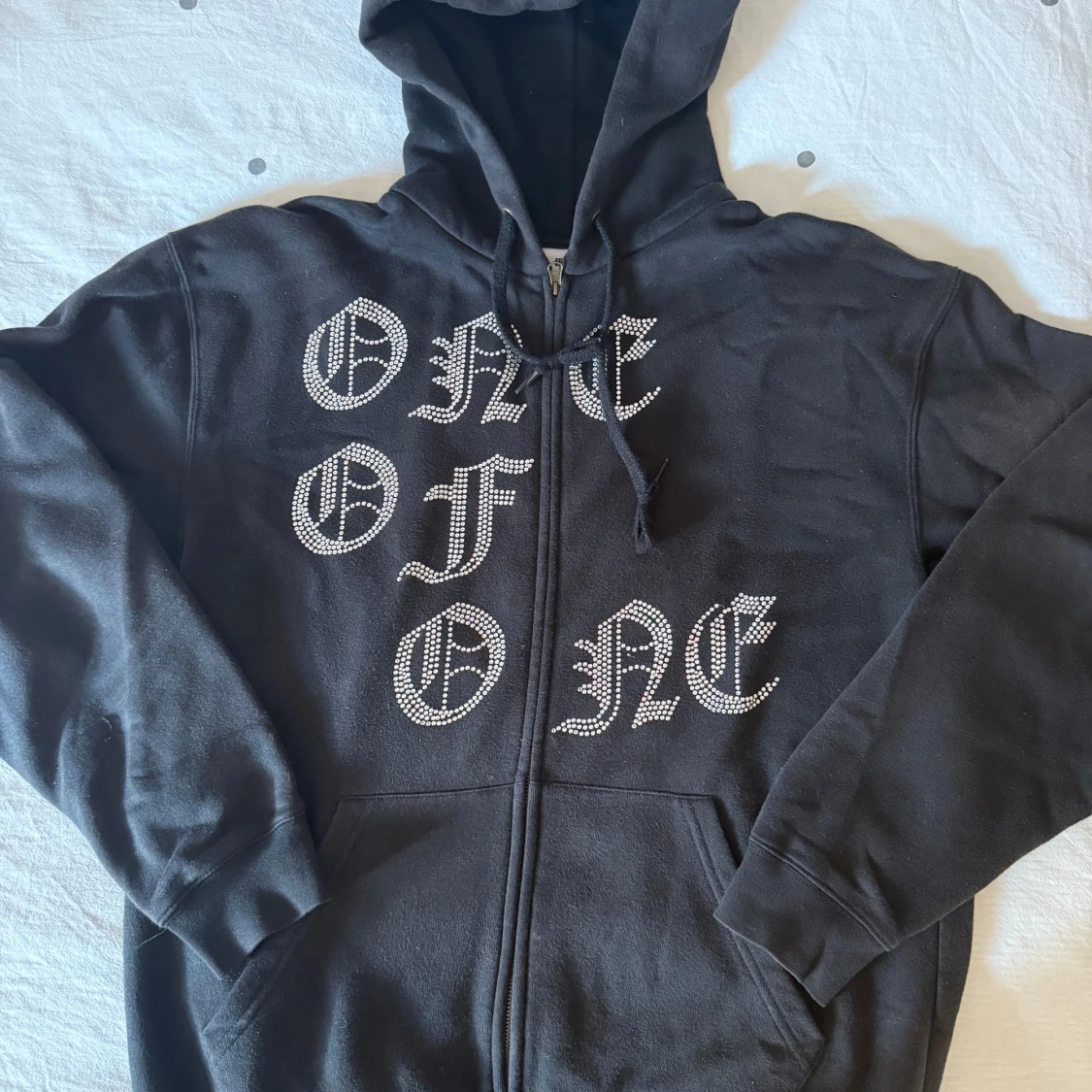 Säljer denna ziphoodie från One of One. Storlek M, endast använd fåtal gånger och i super fint skick. Har små fläckar från blekning på armen och ryggen som man kan se på bilderna. På magen finns två små fläckar som går bort i tvätten. 450 kr + frakt! Vid fler frågor, etc skriv privat 🙏🏼🏄🏽♀️💐🙌🏼✌🏼🩷🫰🏼