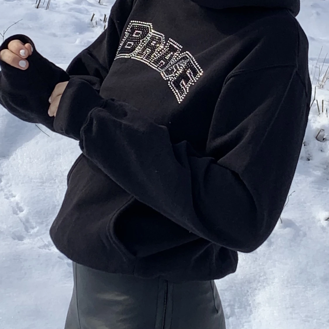 Superfin hoodie frĂ„n âBRACEâ. SĂ€ljs inte lĂ€ngre. Rhinestones pĂ„ bĂ„de fram och baksida. Storlek XS/S och TTS. Köpare stĂ„r för fraktenâ€ïžâđ„