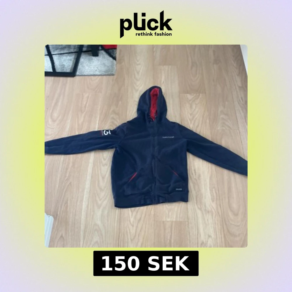 Marinblå fleecejacka från race marine ta med röd insida på huvan och detaljer vid fickorna. Jackan har dragkedja hela vägen, två fickor fram och broderad logga på bröstet samt ärmen. Perfekt för kyliga dagar och snygg till jeans.