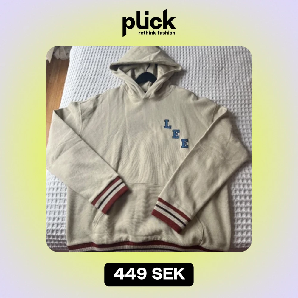Helt oanvänd Lee hoodie med en old school look. Oversized i storlek M, men passar en storlek L för en mer standard fit. Inköpspris 899kr. Andra bilden tagen från website för att visa hur plagget sitter på.
