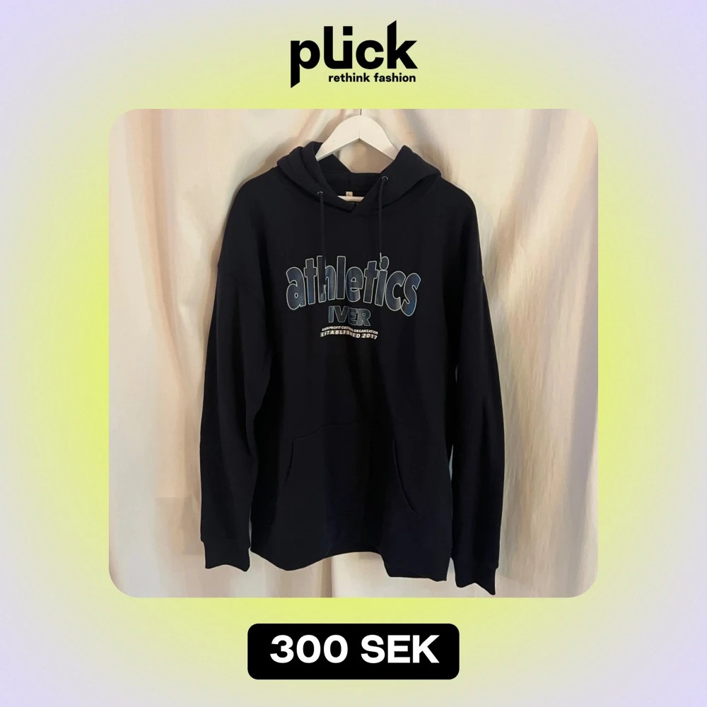 Säljer en helt oanvänd marinblå hoodie med texten 'athletics IVER' på framsidan. Den är oversized och har en klassisk design med huva och långa ärmar. Supermysig invändigt!! Köpt på eventet ”Hip Hop Weekend” under Malmö Dance Week.