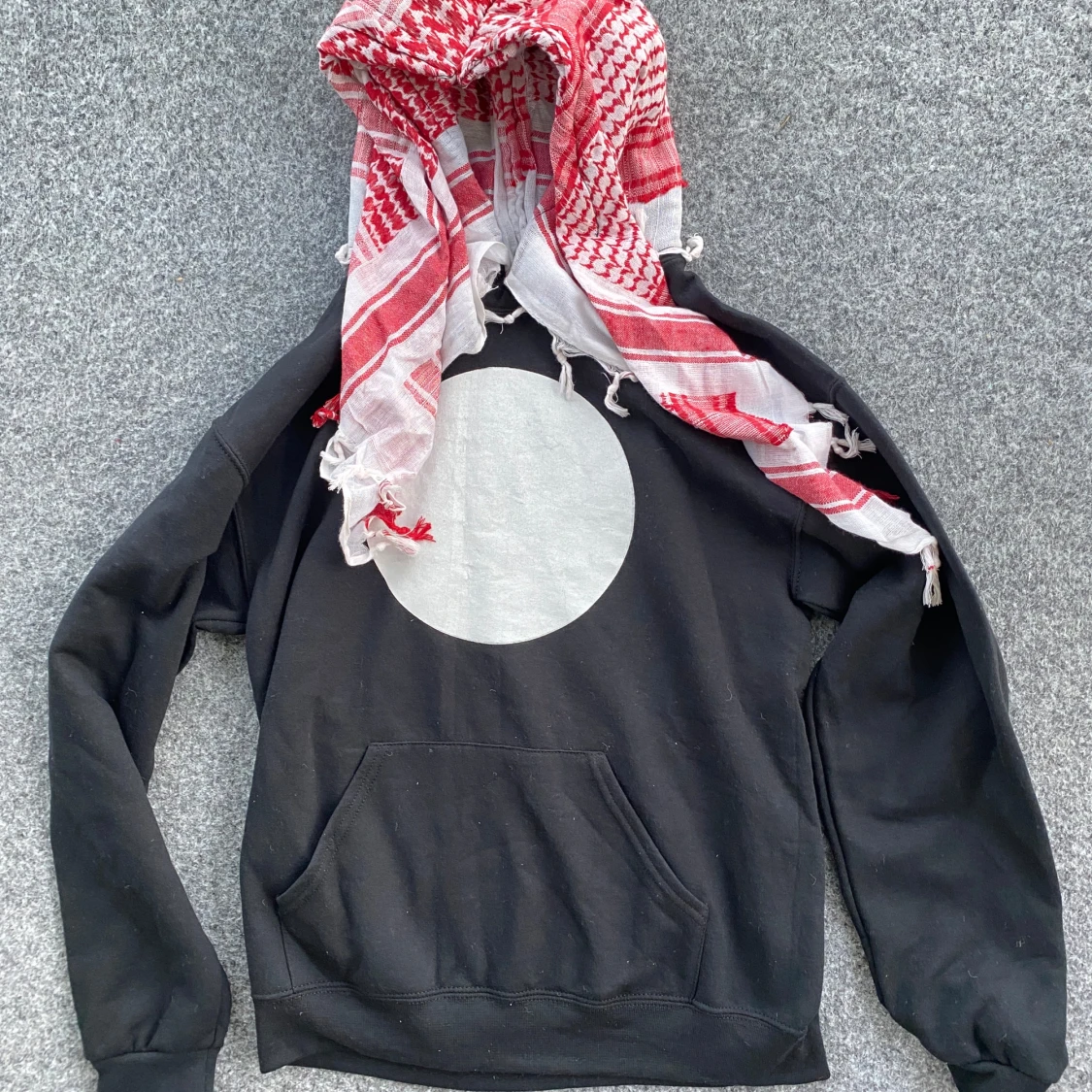 Förmodligen den sjukaste hoodie ni har sett på plick. RARE HOODIE MED EN PÅSYDD PALESTINASJAL (KEFFIYEH) 🇵🇸. HELT NY, OANVÄND. STORLEK: M. PASSAR ÄVEN STORLEK S OM DU VILL HA BAGGY LOOK.