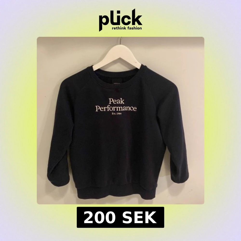 Säljer en mörkblå tröja från Peak Performance med vit text på bröstet. Tröjan har långa ärmar och en rund halsringning. Perfekt för en avslappnad stil.