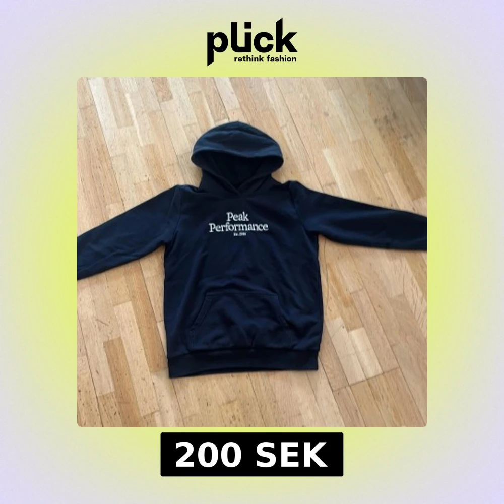 Säljer en svart hoodie från Peak Performance med vit broderad logga på bröstet. Tröjan har huva och en stor magficka framtill. Perfekt för en avslappnad och sportig stil.