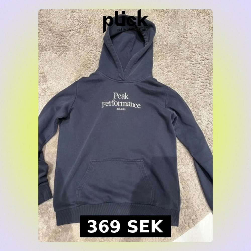 Storlek 170 cm. Snygg mörkblå hoodie från Peak Performance med vit logga och text på bröstet. Använd ett fåtal gånger inga tecken på användning. Klassisk design med huva och stor magficka framtill. Mjukt och skönt material, ribbade muddar vid ärmslut och nederkant. Perfekt för chill eller streetwear. Kom ej med skambud.