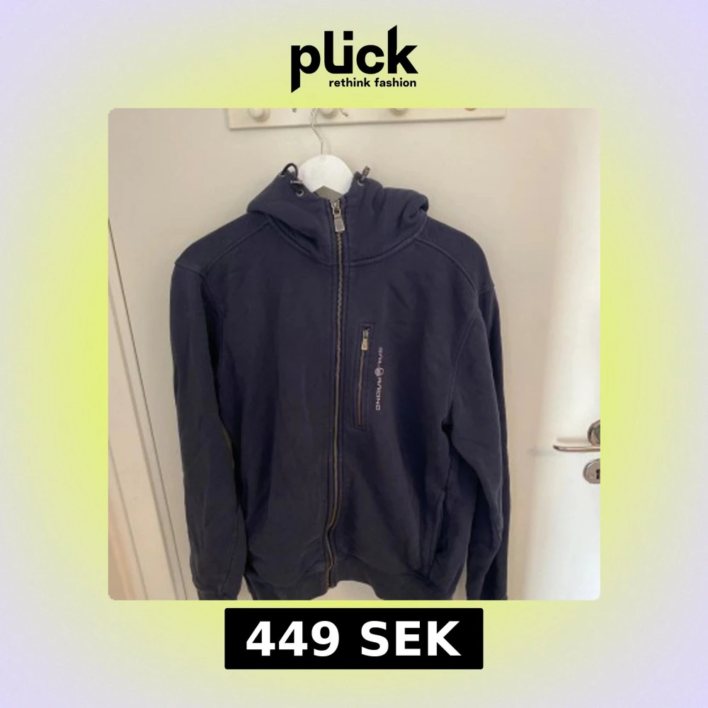 Säljer en mörkblå hoodie från Sail Raicing med dragkedja och huva. Jackan har en bröstficka med dragkedja och långa ärmar. Perfekt för kyliga dagar.