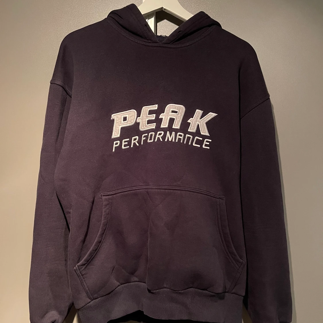 Vintage Peak performance hoodie svart/mörkblå färg. Är lite oversize i modellen med fleece insida. Bra skick!