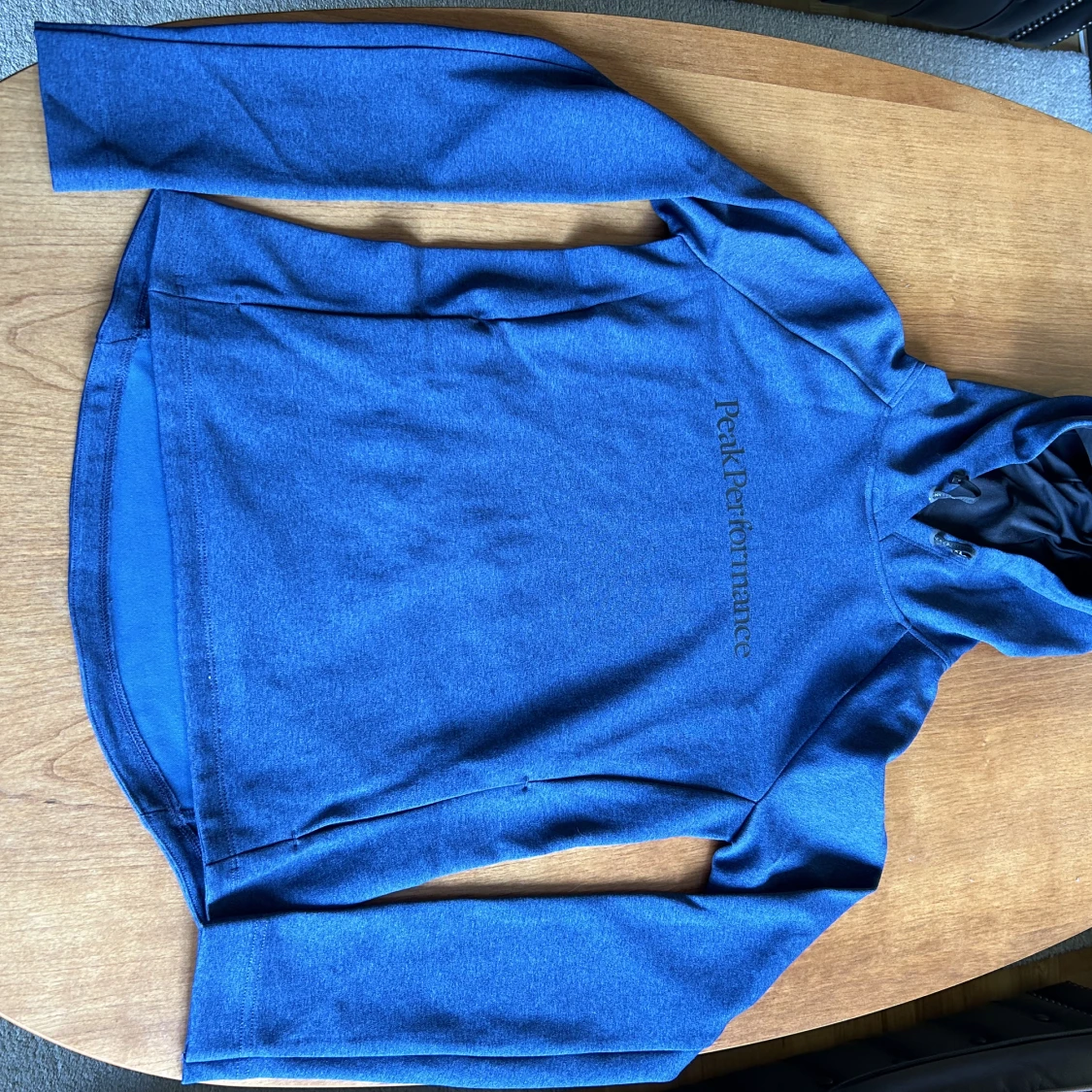 Helt ny peak hoodie mörkblå mycket fin passar till att träna i . Stl S .