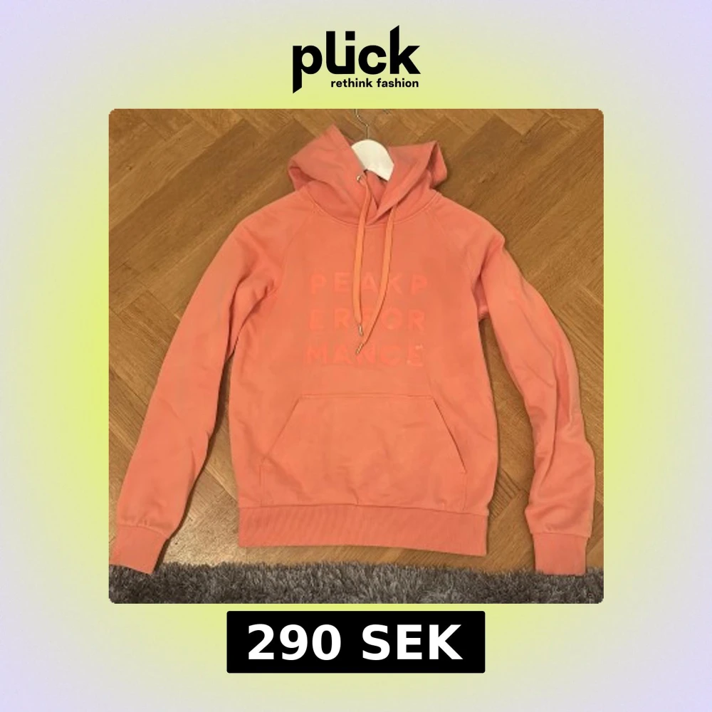 Säljer en snygg korallfärgad hoodie från Peak Performance i storlek XS. Tröjan har huva med snörning, stor magficka och tryckt logga framtill. Perfekt för chill dagar eller när du vill ha en färgklick i garderoben.