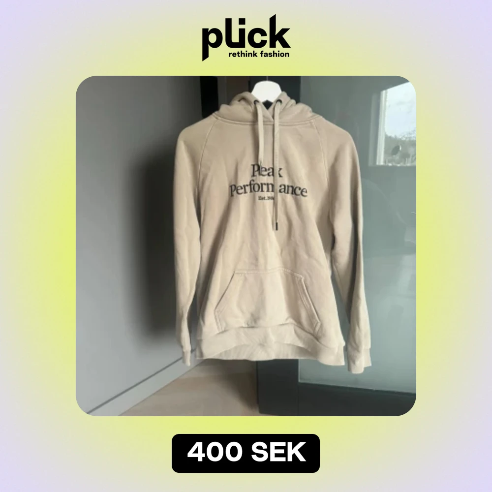 Hoodie från peakperformance i brun/beig färg. Hoodien är i storlek L dam men sitter som en M. Använd ett par gånger men är i ett mycket fint skick