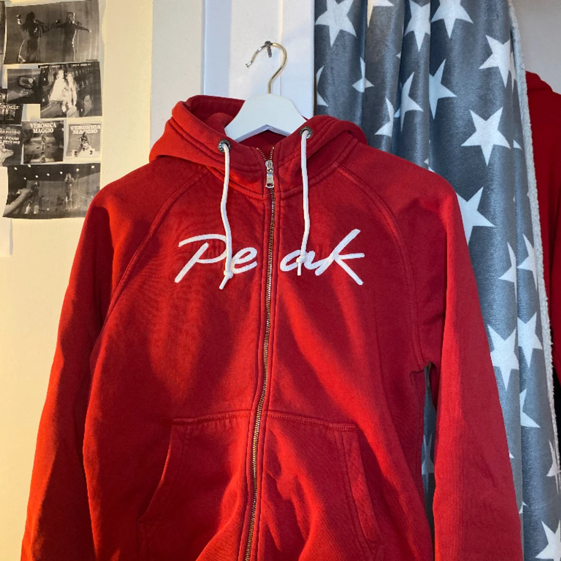 En väldigt liten fläck på högra fickan som man knappast ser men annars bra skick. Hoodien finns ej att köpa i butiker osv längre.