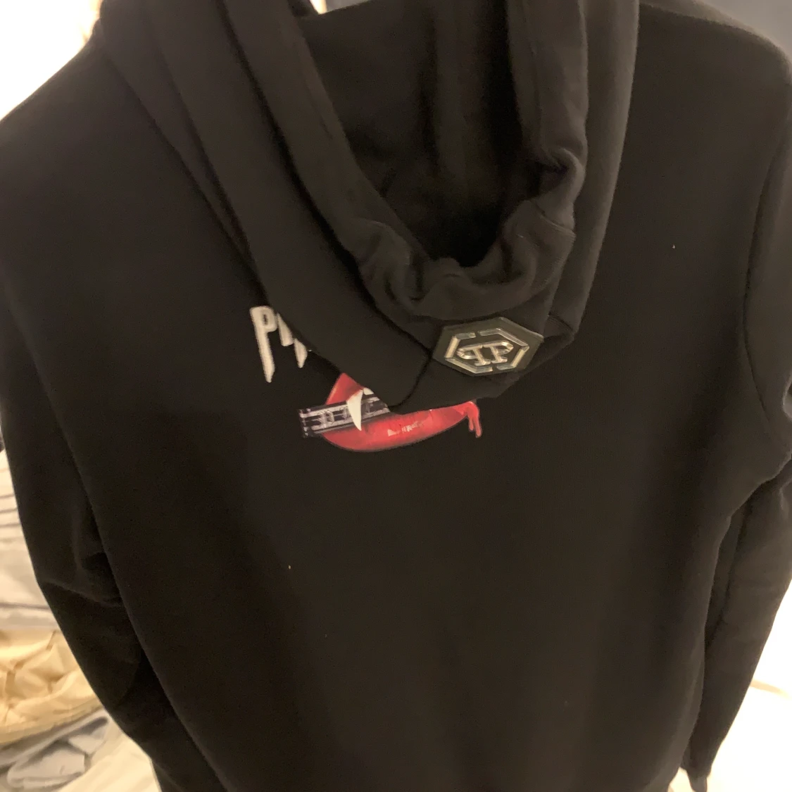 Säljer min Philip plein hoodie med kvitto storlek M, knappt använd ny pris 8000 kr på Johnells säljer för 2000. Perfekt skick inga orsaker eller håll, kan mötas eller frakta.
