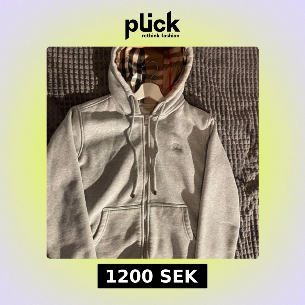 Säljer en stilren grå huvtröja från Burberry.jag säljer den på grund av att den tar plats i garderoben och inte änvänds längre(köpt här på plick) storlek S
