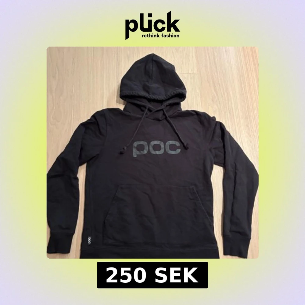 Svart hoodie från POC i storlek small med stor logga på bröstet. Tröjan har huva med snörning och en stor magficka framtill. Tillverkad i mjuk bomull och har långa ärmar. Perfekt för en chill och sportig stil.