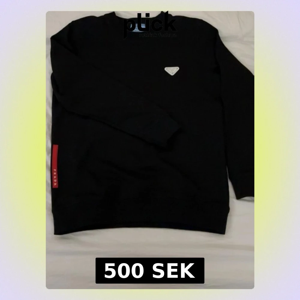 Svart tröja från prada helt oanvänd och ny perfekt för dig som vill ha en lyxig och fräsch outfit, prada påse kommer också på köpet. Storleken är S men skulle säga det lutar mer mot M så det passar båda.