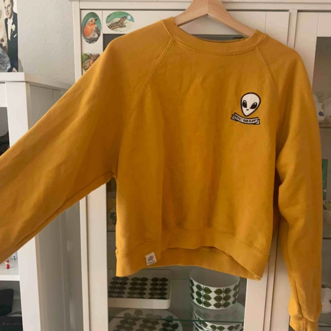 Senapsgul oversized sweater med Alienmärke på bröstet från Pull&Bear