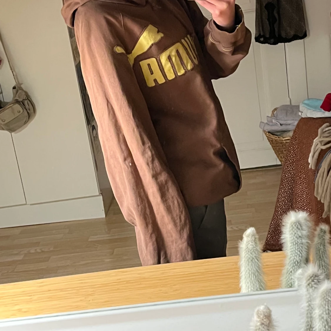 assnygg brun hoodie från puma, skulle säga passar xs-m beroende på hur man vill att den ska sitta :)
