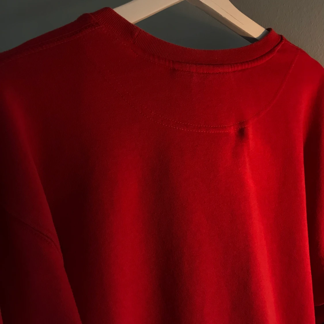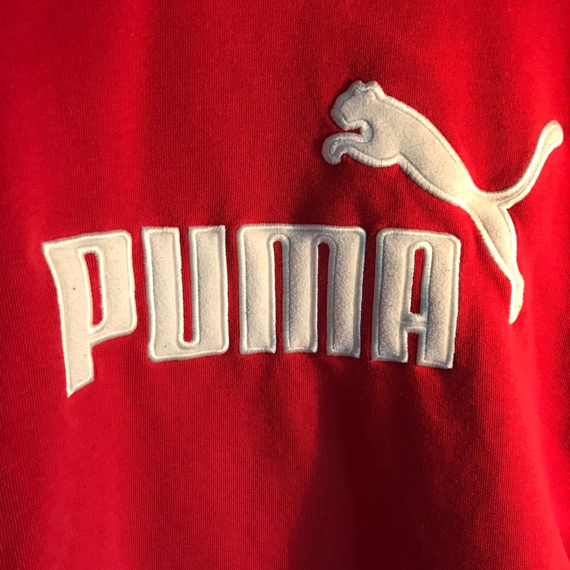 Upcycled puma sweater in red. Previously size L, resewn to size S/M.