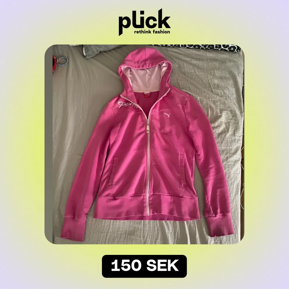 Säljer en snygg rosa hoodie från Puma i bra skick. Den är i storlek M men den sitter som en xs/s💘 den har svart märke från en penna som syns om man kollar noga på vänster bak ärm.