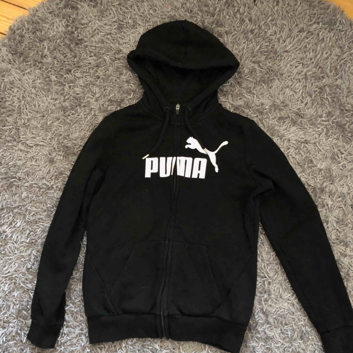 Svart luvtröja med Puma tryck. Köpare står för frakt.