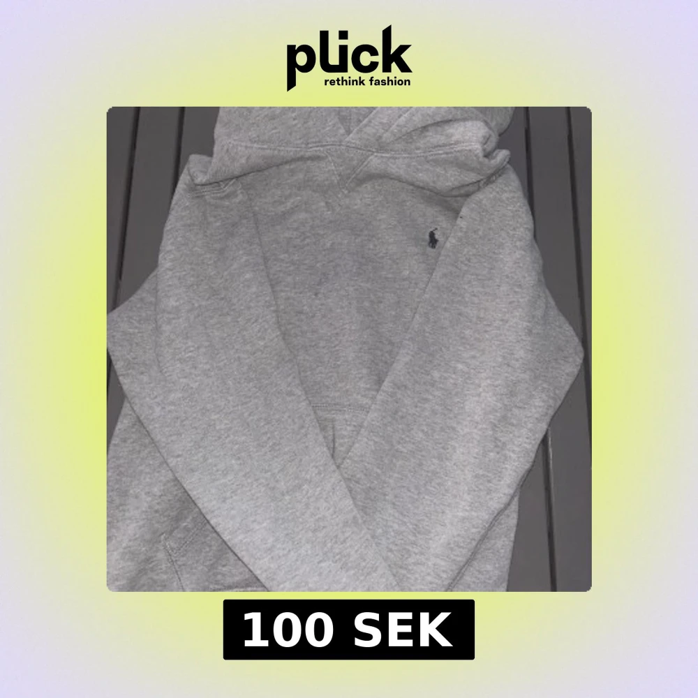 Säljer en stilren grå hoodie från Ralph Lauren med en liten broderad logga på bröstet. Tröjan har en klassisk design med huva och långa ärmar. Perfekt för en avslappnad look. Köpt 2019. Använd 1 gång.