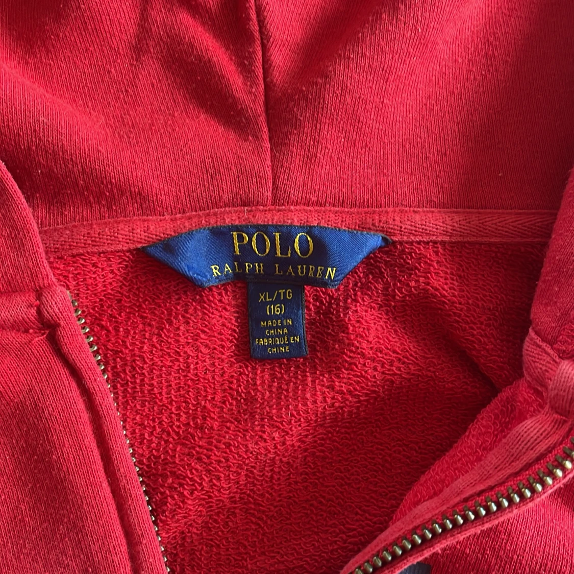Röd hoodie från Polo Ralph Lauren med stor huva och dragkedja framtill. Tröjan har mörkblå POLO-tryck över bröstet och är tillverkad i mjuk bomull. Perfekt för en chill och sportig look.