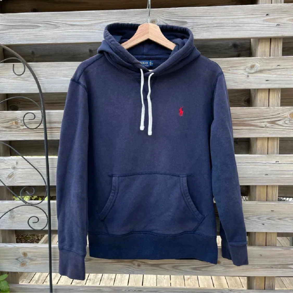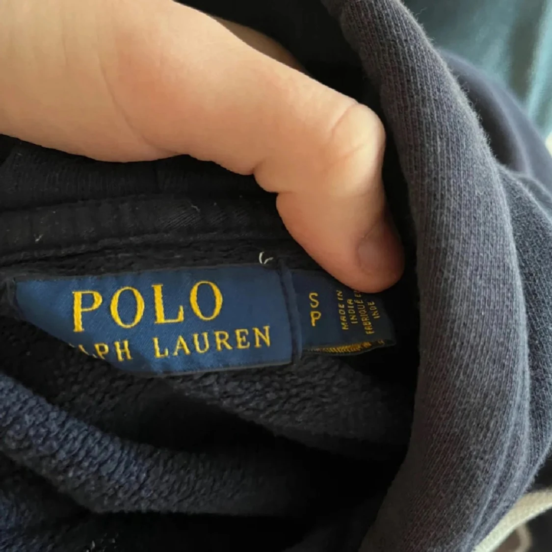 Mörkblå Ralph Lauren Hoodie i storlek S, passar XS/S. Den har inga hål eller fläckar, men den är lite urtvättad i färgen. På ryggen har den blivit lite solblekt, på bild 3 🙌