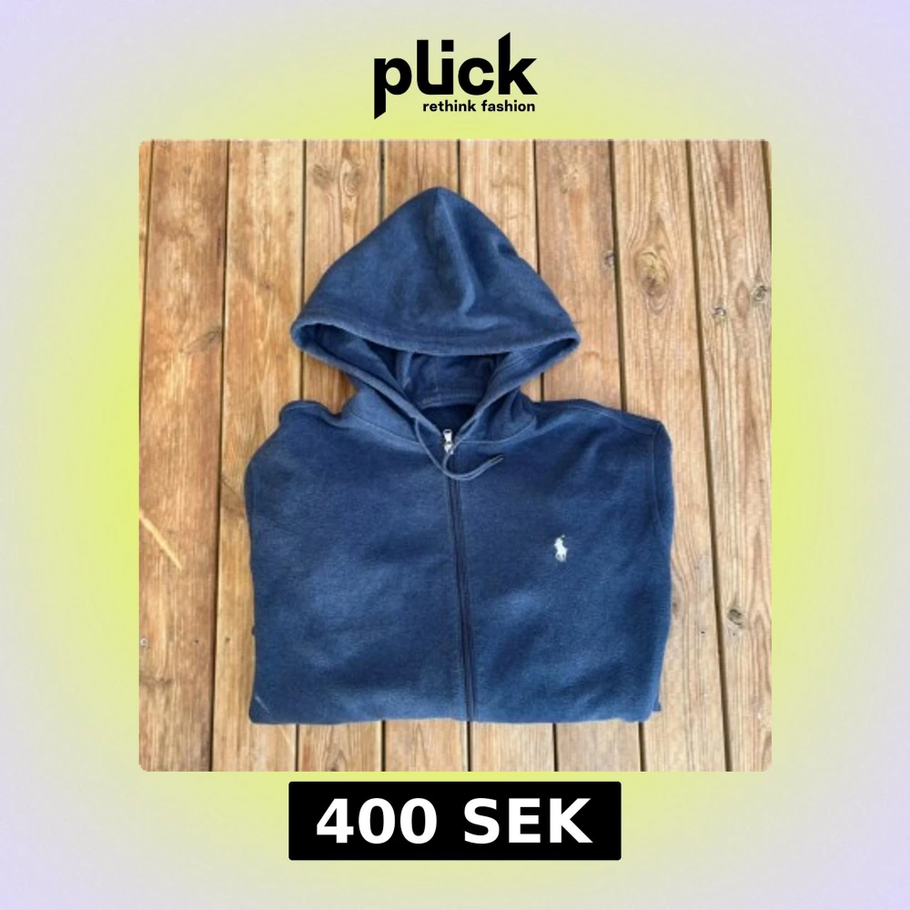 Säljer en mörkblå hoodie från Ralph Lauren med dragkedja och huva. Tröjan har två fickor framtill med dragkedja och den klassiska loggan broderad på bröstet. Perfekt för en avslappnad stil.