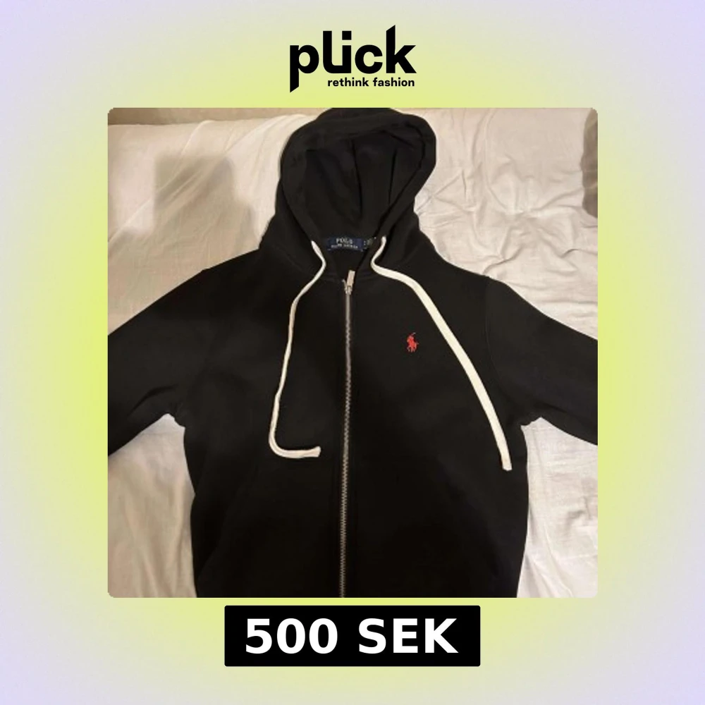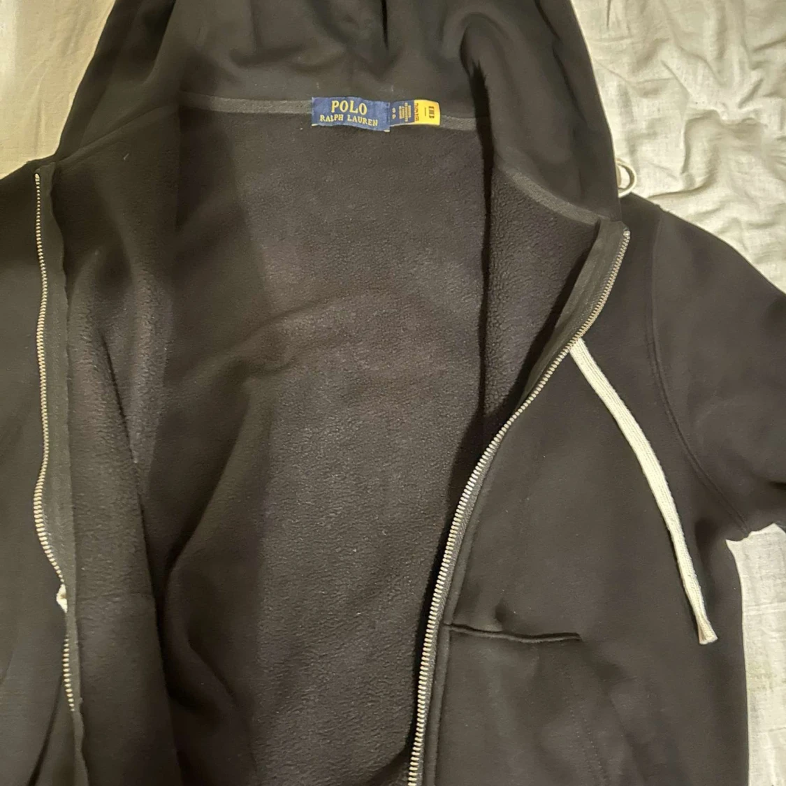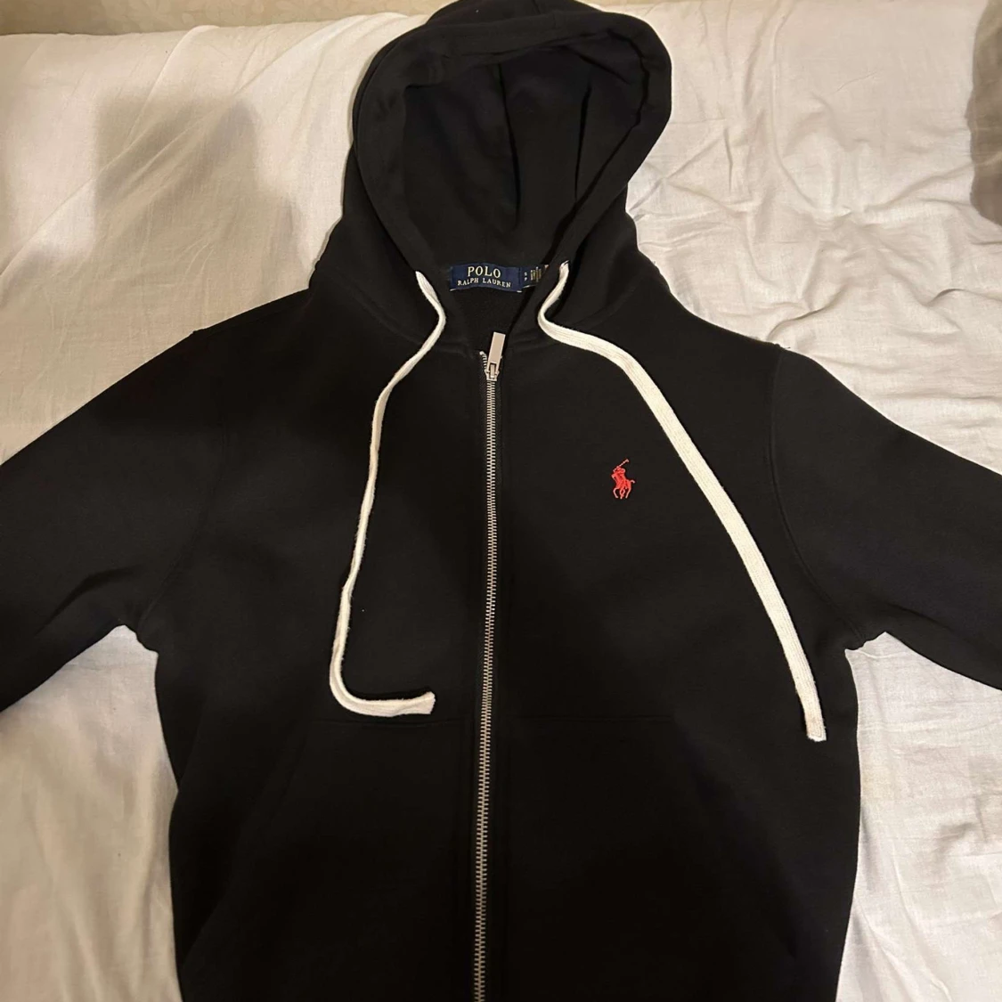 Svart hoodie från Polo Ralph Lauren med dragkedja framtill och vit dragsko i huvan. Klassisk röd logga broderad på bröstet. Perfekt för en avslappnad och stilren look