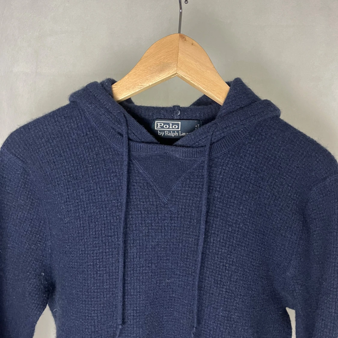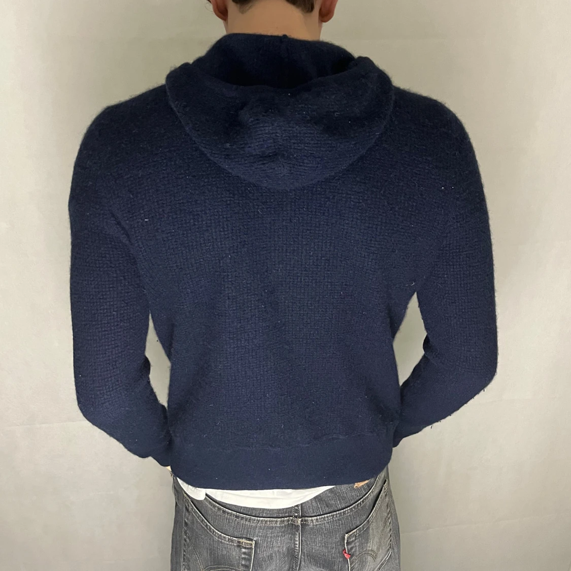 Riktigt skön raffe Hoodie, ull och Kashmir bladning. Riktigt fint skick, enbart lite damm på tröjan. Modellen är 185, sitter som en S.