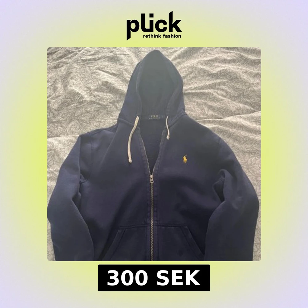 Säljer en snygg mörkblå zip hoodie från Polo Ralph Lauren med dragkedja och huva. Den har en broderad logga på bröstet och snören vid huvan. Perfekt för en avslappnad stil.