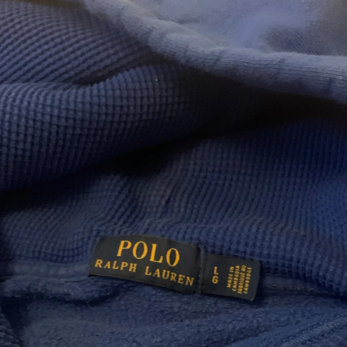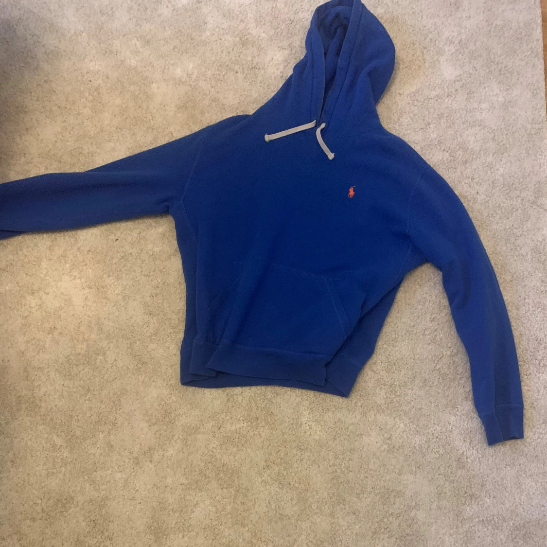Snygg blå hoodie från Polo Ralph Lauren med klassisk röd logga på bröstet. Tröjan har huva med vit snörning, magficka och långa ärmar. Mjuk insida och ribbade muddar vid ärmslut och nederkant. Perfekt för chill dagar och streetwear. Jag är 185 cm och den sitter lite kort på mig👍🏻