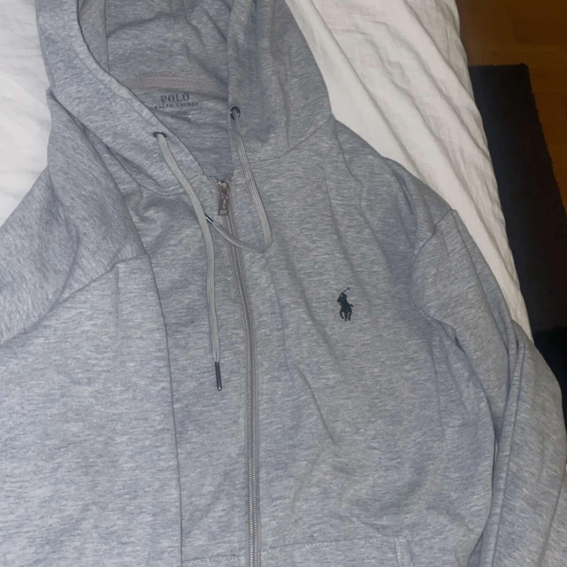 En grå ralph laurenzip hoodie i jätte bra skick som ny. Köpte den i en för stor storlek så använde aldrig den.