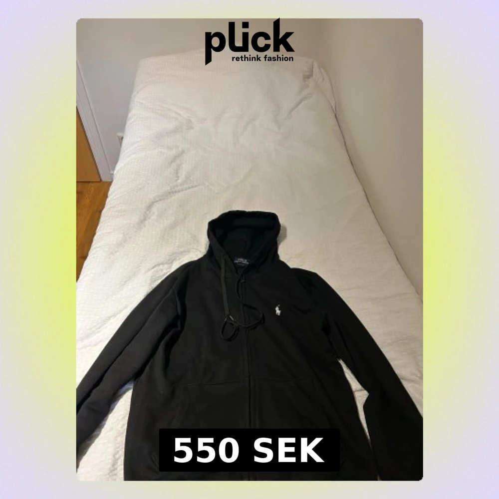 Säljer en svart hoodie från Polo Ralph Lauren med dragkedja och klassisk vit broderad logga på bröstet. Hoodien har huva med dragsko och två fickor framtill. Perfekt för en avslappnad och stilren look.