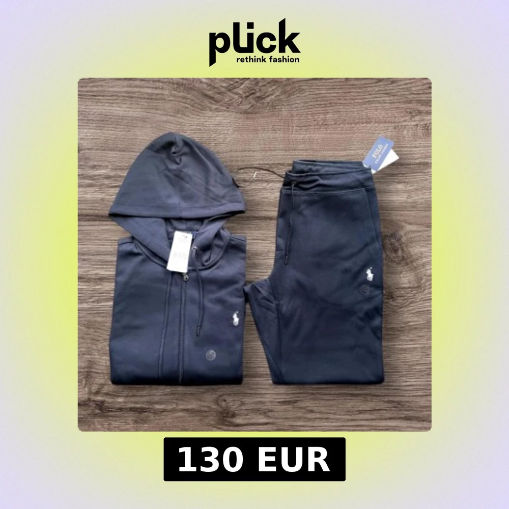 Snygg mörkblå hoodie och byxor från Polo Ralph Lauren med klassisk vit logotyp på bröstet. Tröjan har huva, dragkedja framtill och två fickor. Materialet är mjuk bomull och passformen är normal. Perfekt för kyliga dagar eller när du vill ha en stilren look.