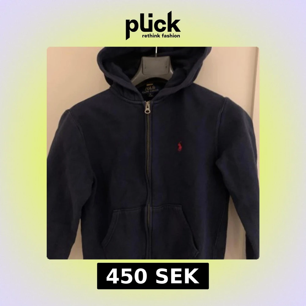 Säljer en snygg mörkblå hoodie från Polo Ralph Lauren med dragkedja. Perfekt för en avslappnad stil. Passar barn mellan 10-12 år