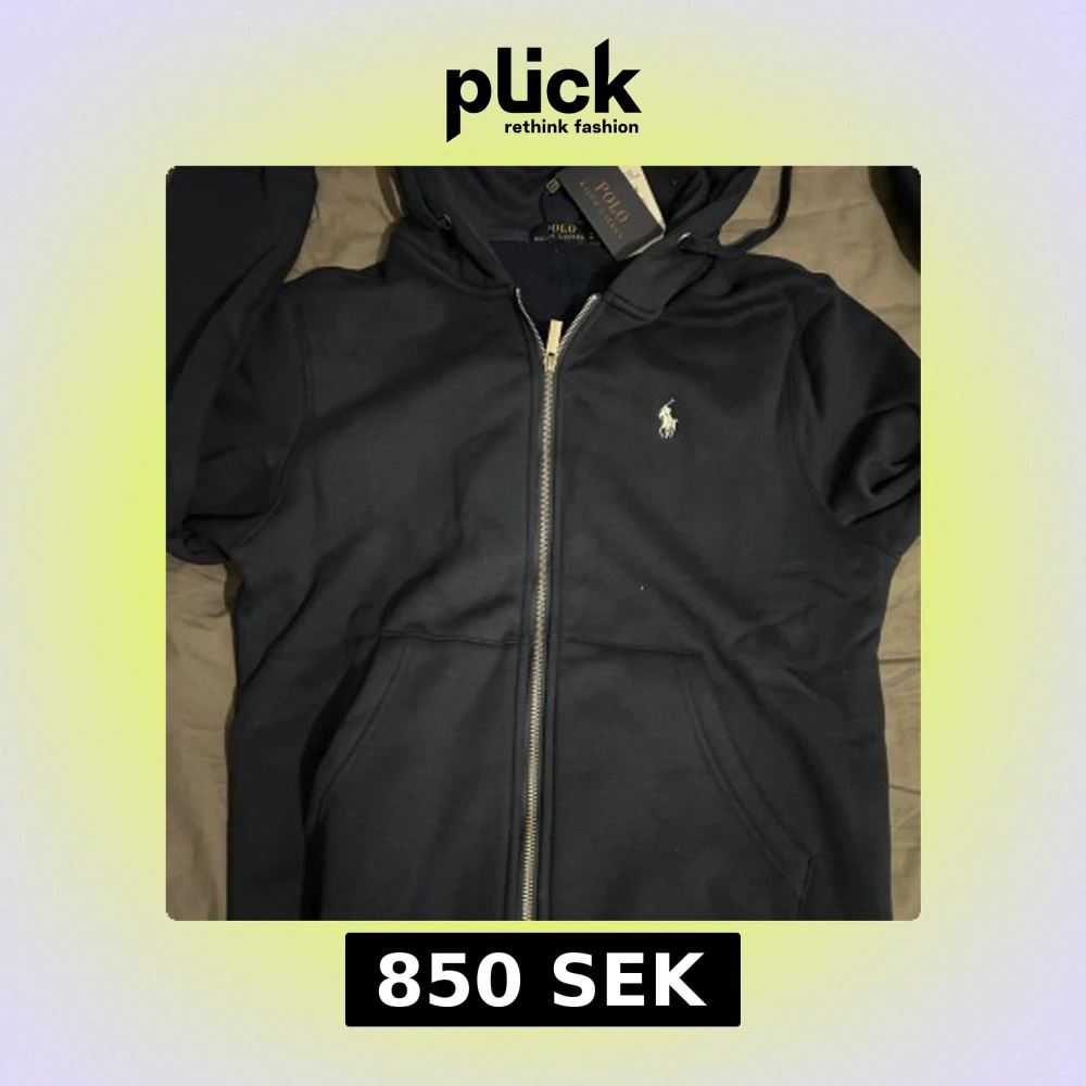 Säljer en snygg mörkblå hoodie från Ralph Lauren med dragkedja och huva. Den har en broderad logga på bröstet och är perfekt för en avslappnad stil. Passar bra till både jeans och joggers.