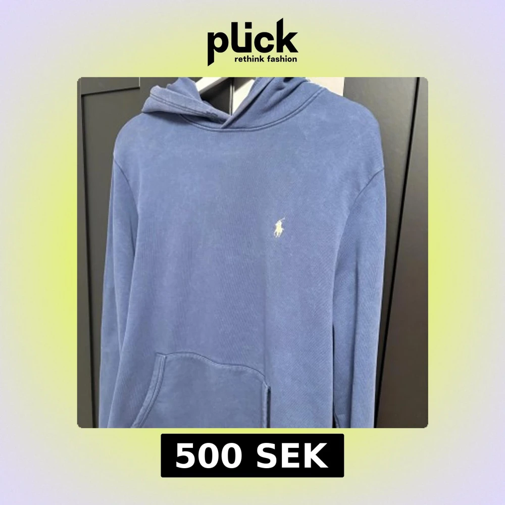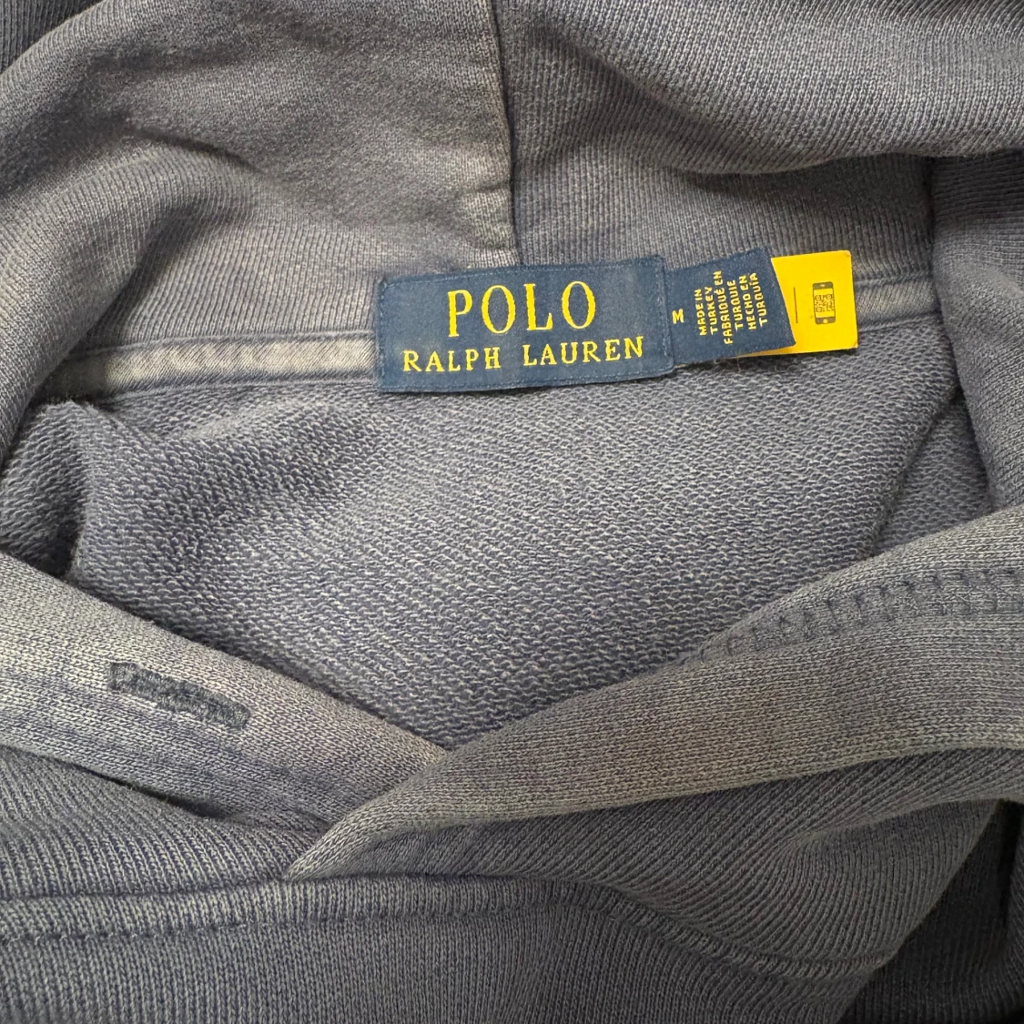 Snygg blå hoodie från Polo Ralph Lauren med klassisk broderad logga på bröstet. Tröjan har huva, känguruficka och är tillverkad i mjuk bomull. Okej skick då den är använd ganska mycket och ganska urtvättad
