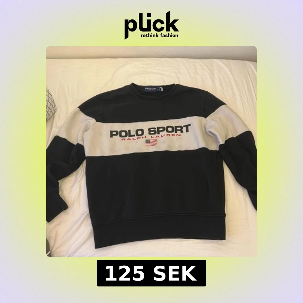 Snygg svart och vit tröja från Polo Sport Ralph Lauren med breda blockränder och stor logga framtill. Klassisk crewneck-modell med långa ärmar och mjukt material. Perfekt för dig som gillar sportig och stilren streetwear.