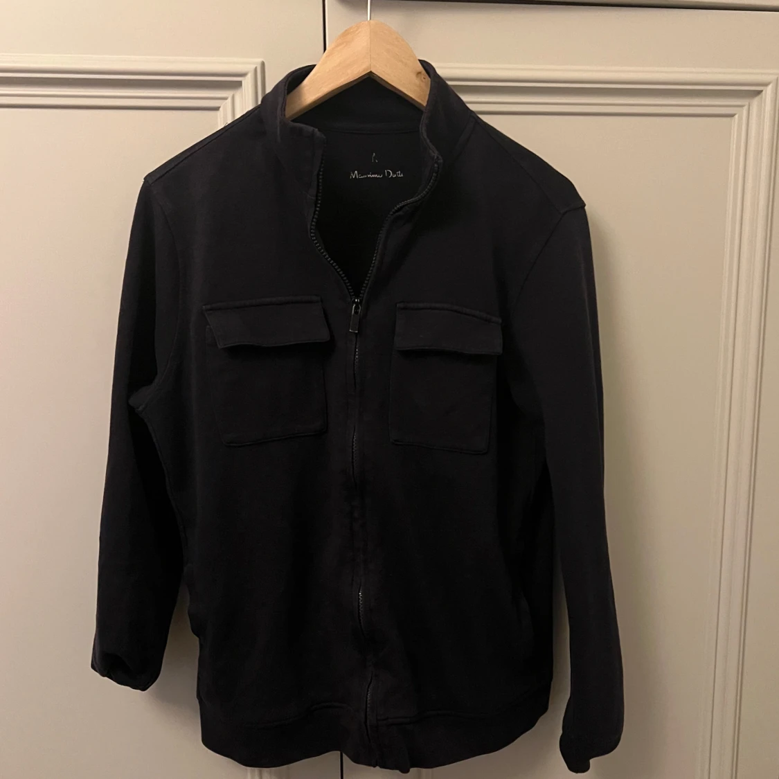 Snygg svart jacka från Massimo Dutti med dragkedja och två bröstfickor med lock. Jackan har en stilren design och är perfekt för en casual look. Den är långärmad och har en normal passform.
