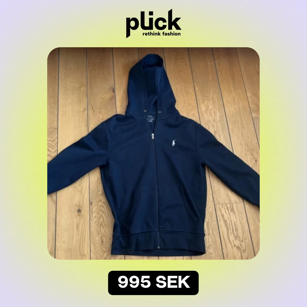Blå Ralph Lauren zip hoodie i skick 9/10. Nypris är 2000+