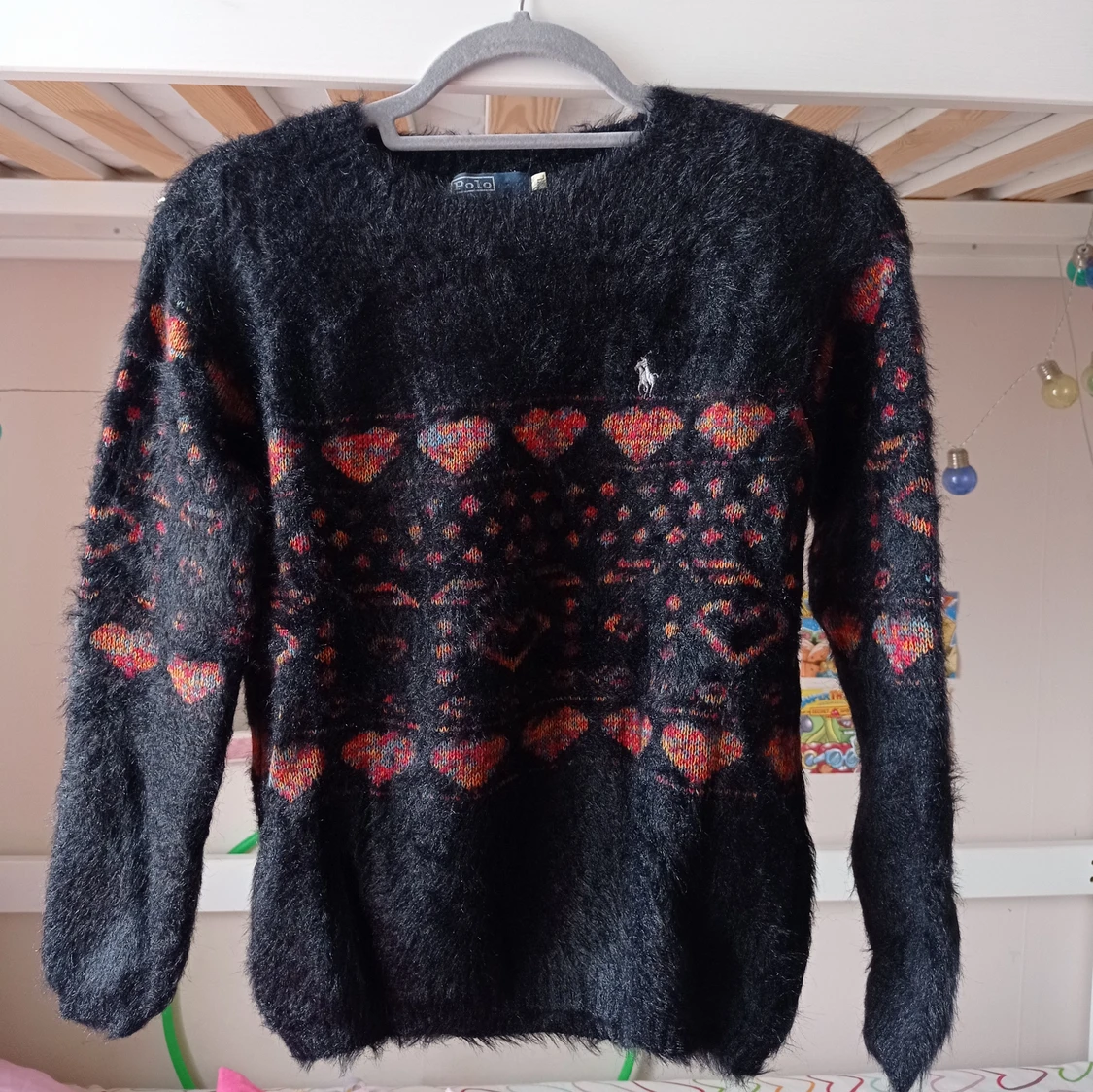 En svart Polo tröja med röd hjärta mönster. (Kontakta mig för frakt pris).