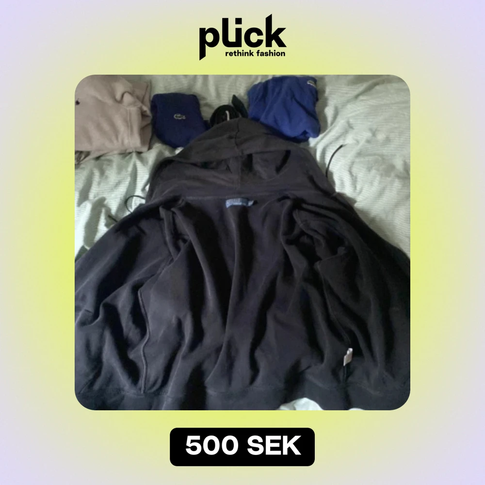 L skick 7/10 lite flisig på arm kanten som man kan se på sista bilden men annars är den bra skick använd typ 1 gng för den var för stor för mig 😊