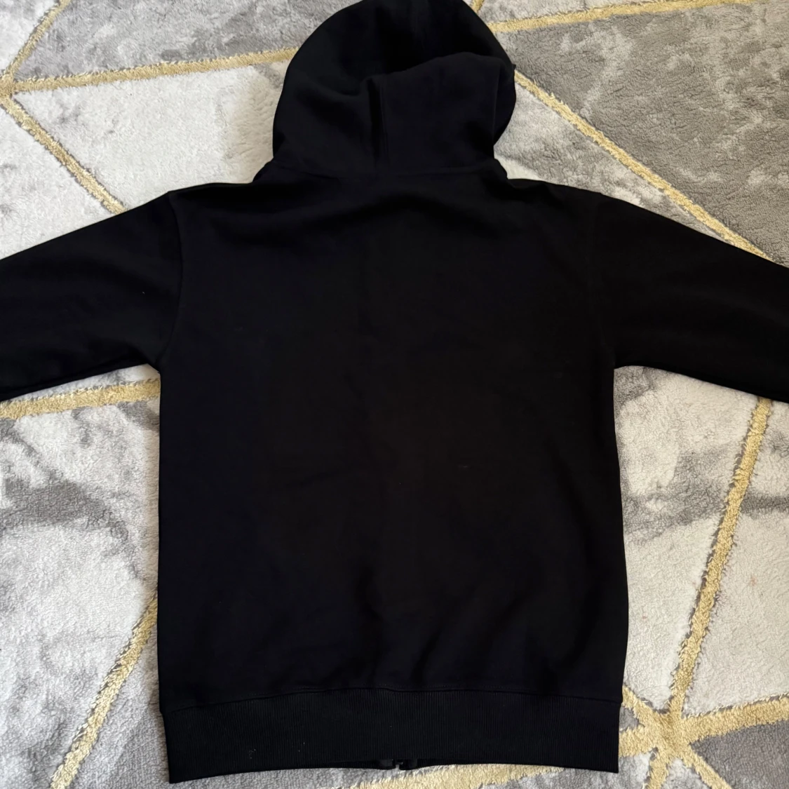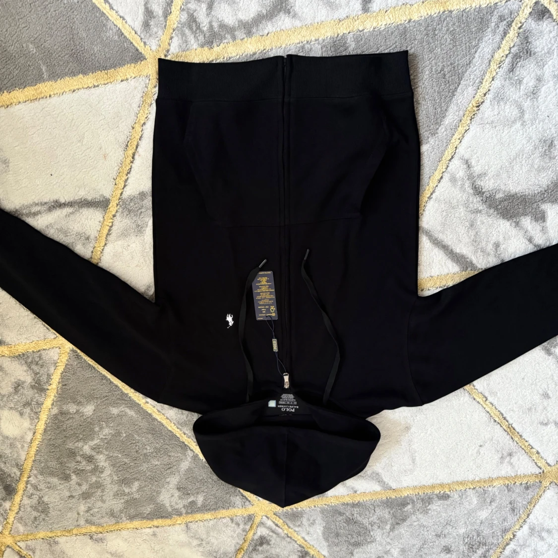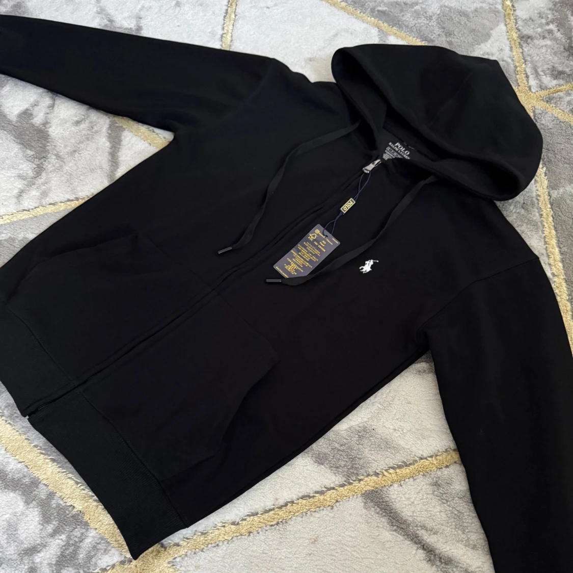 Svart zip hoodie från Polo Ralph Lauren med vit broderad logga på bröstet. Tröjan har dragkedja, huva med snörning och två stora fickor framtill. Tillverkad i mjuk bomull och har ribbade muddar vid ärmslut och midja. Perfekt för en chill och stilren look.