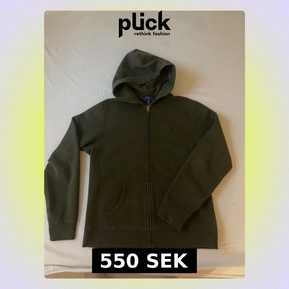 Snygg mörkgrön hoodie från Polo Ralph Lauren med klassisk broderad logga på bröstet. Tröjan har huva, dragkedja framtill och en stor ficka. Tillverkad i mjuk bomull och har långa ärmar med ribbade muddar. Perfekt för chill dagar.