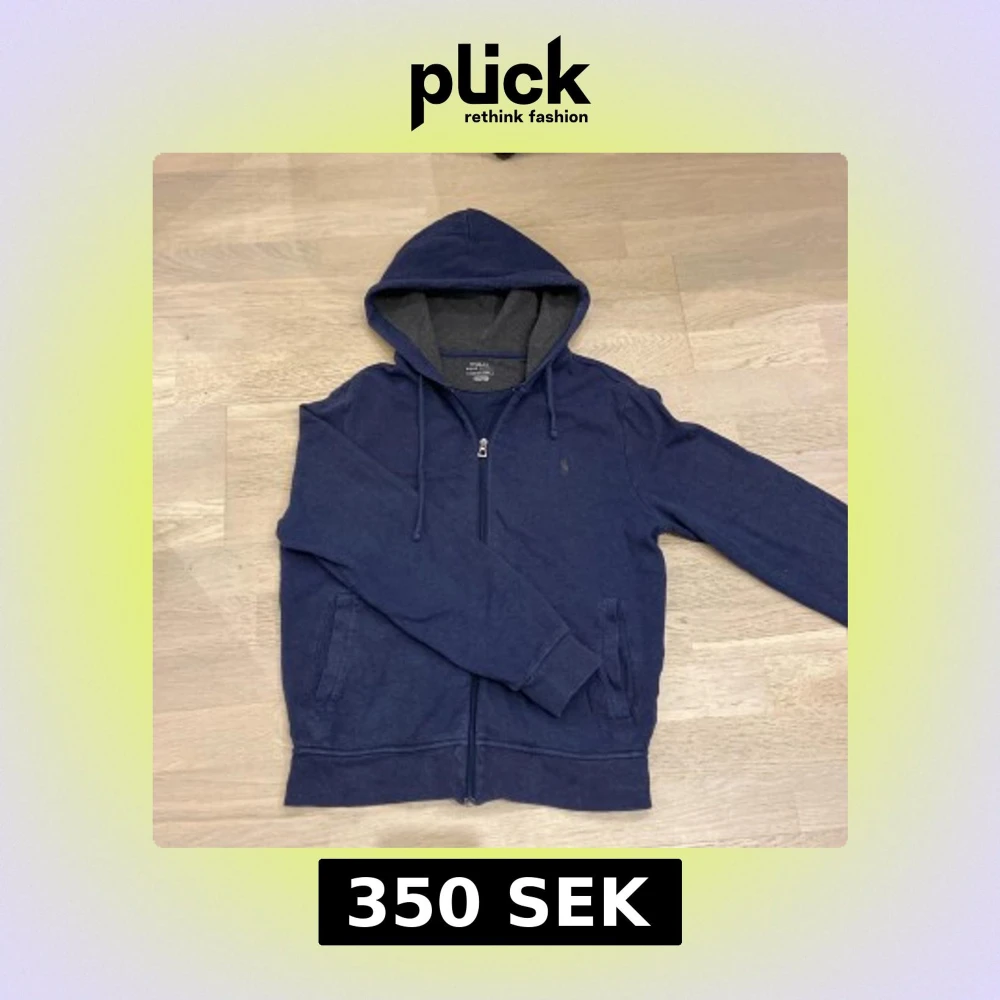 Säljer en snygg mörkblå zip hoodie från Ralph Lauren. Den har en dragkedja framtill och en justerbar huva. Perfekt för en avslappnad stil.