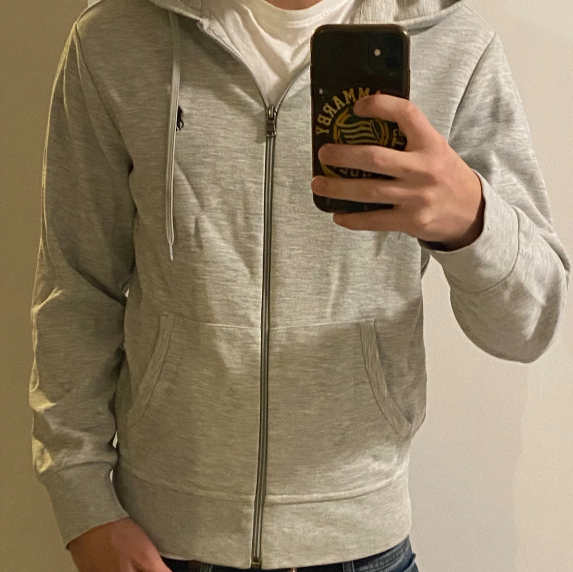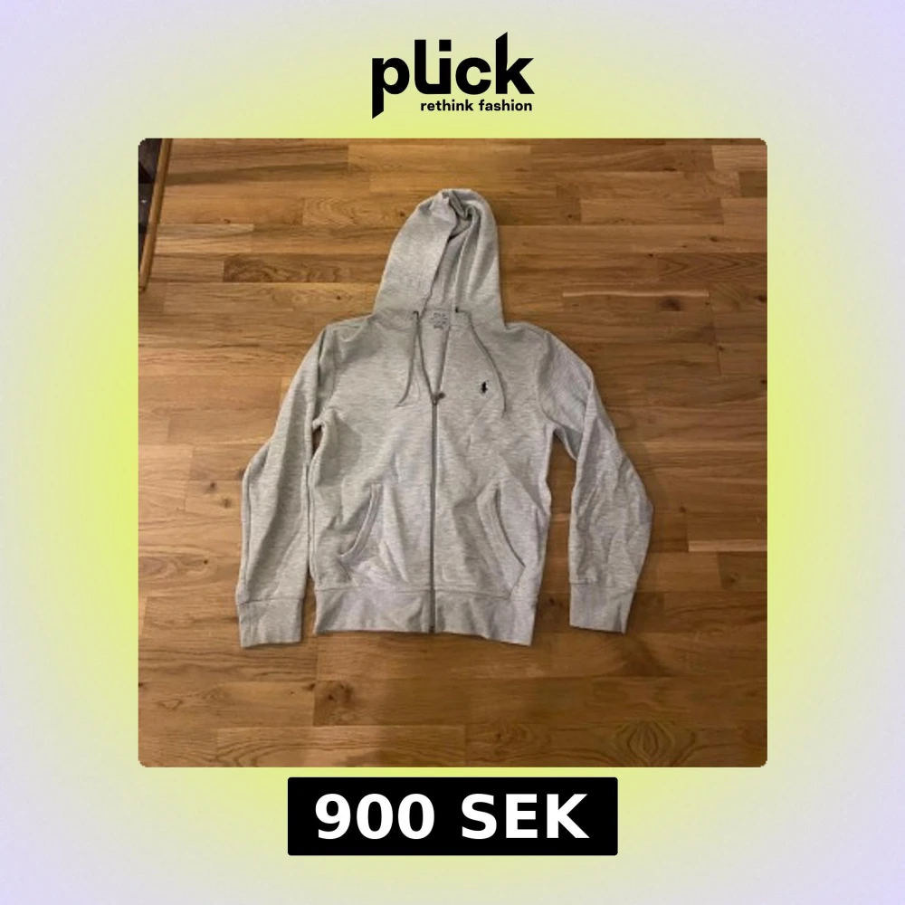 Snygg grå hoodie från Polo Ralph Lauren med dragkedja och huva. Tröjan har snörning vid huvan, två fickor framtill och den klassiska Polo-loggan broderad på bröstet. Perfekt för chill dagar och enkel att matcha med jeans