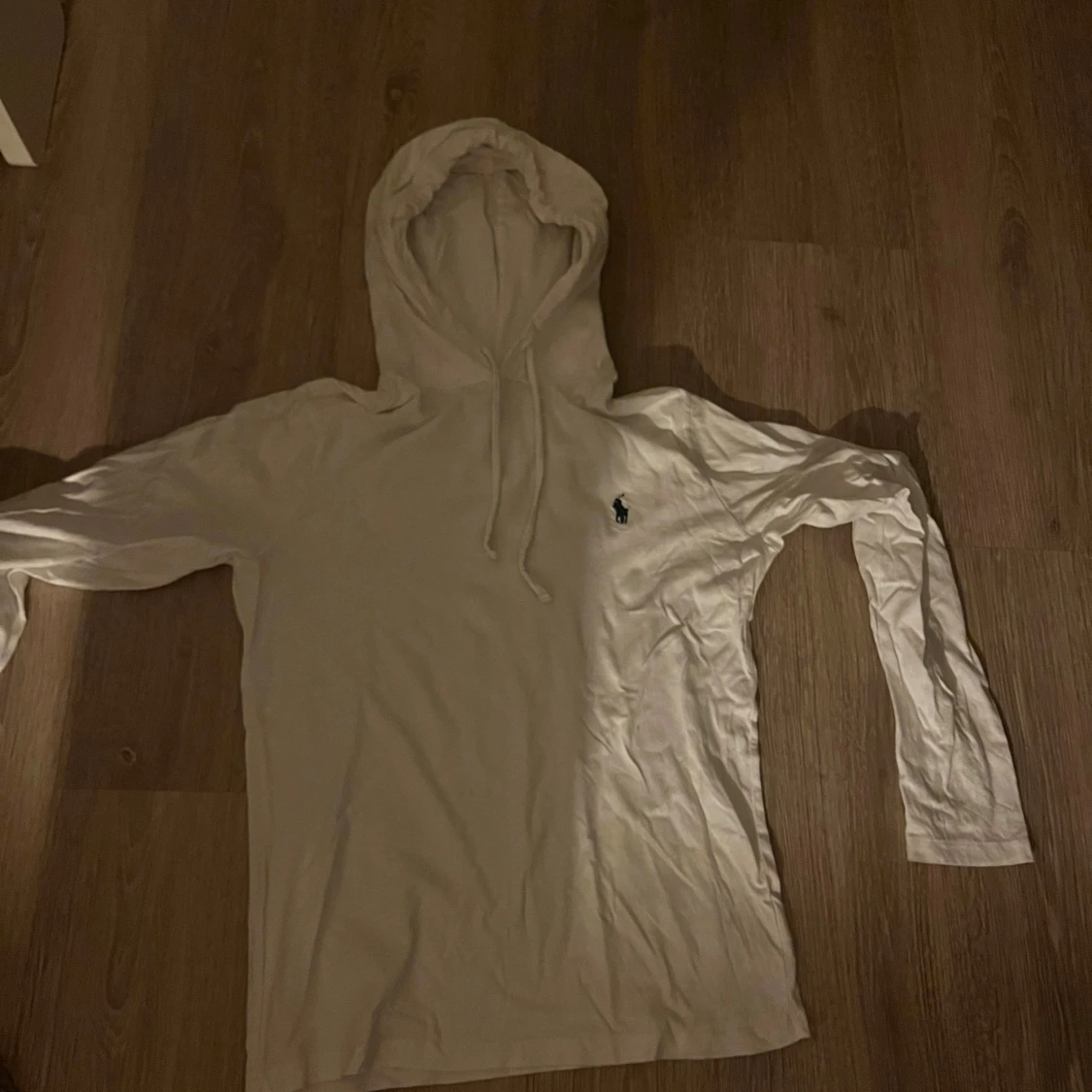 Vit hoodie från Polo Ralph Lauren i mjuk bomull. Väldigt bra skick inte annvänd mer än 3 gånger. Klassisk design med huva och snörning, långärmad och med den ikoniska lilla broderade loggan på bröstet. Perfekt för en chill och stilren look.